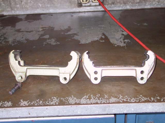 The brackets are modified Cobra mustang brackets. I used Corvette calipers. Brackets cost around $50 each wholesale, with rebuilt calipers around $100 each. I used PF "Z" rated pads.