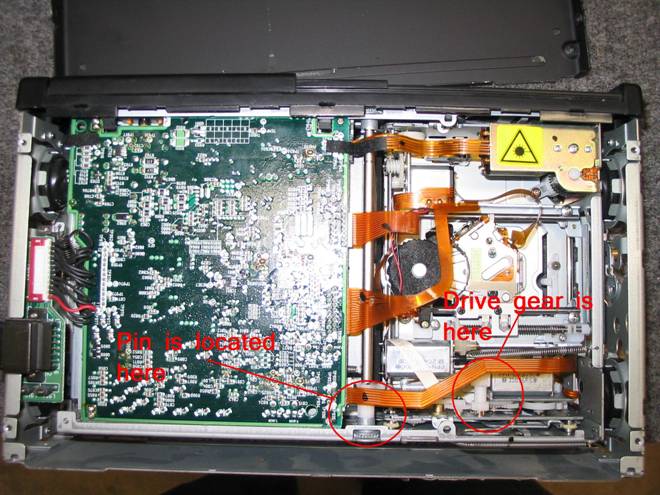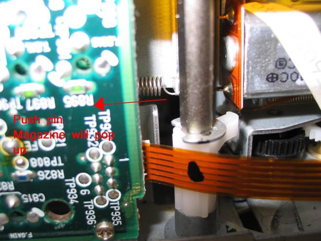 Now we need to make sure the pin that ejects the CD from the magazine to the